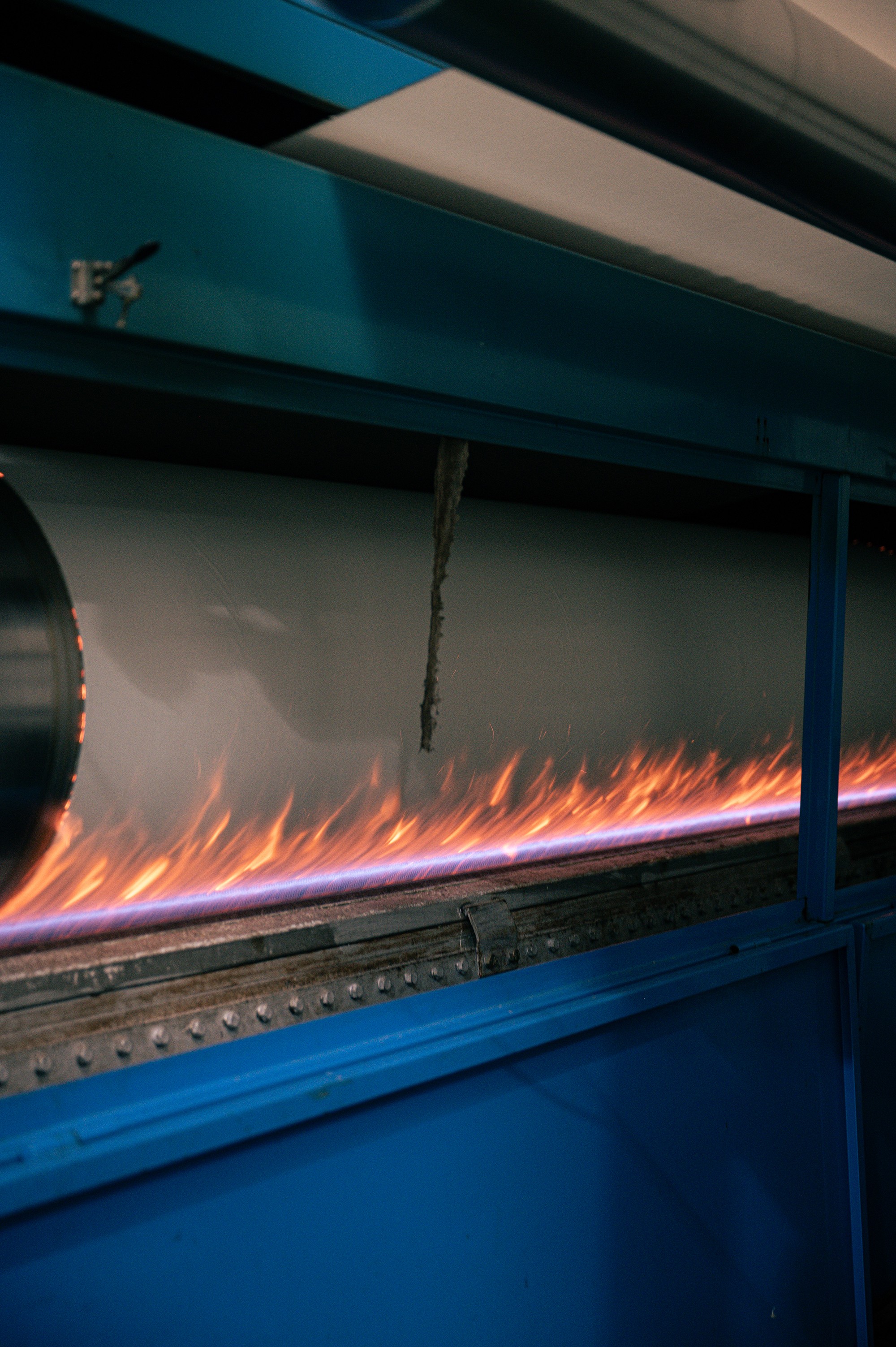 대칭을 이루는 조화로운 곡선은 하나의 제품이 탄생하기까지 원료와 원단이 거치는 수많은 정제 과정의 생동감있는 움직임 상징합니다.